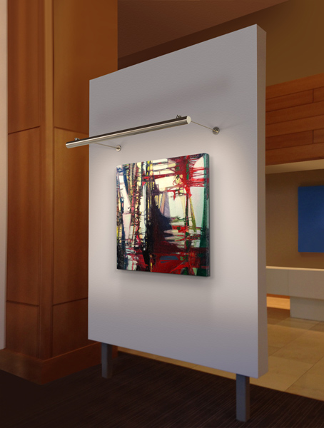 Kurve Display Sign features a lambertian white diffuser that provides uniform light without hotspots. At 7.5 watts per foot, the 24 volt DC channel contains 85+ or 95+ CRI LEDs and mounts 14 inches from wall. It may be ordered with a 4.6 inch round canopy that fits on a standard junction box or a 2" feed through stem with round plaster ring. Hinges on the fixture arm rotates up to 90 degrees (from facing the wall to straight down). Kurve is powered by a Class 2 remote power supply up to 40 feet away. Available from 12 inches to 120 inches/10 feet. May be ordered in 3, 5, 8 or 10 inch increments. Fixtures include a 5 year warranty. For custom designs and quotes, send drawings to