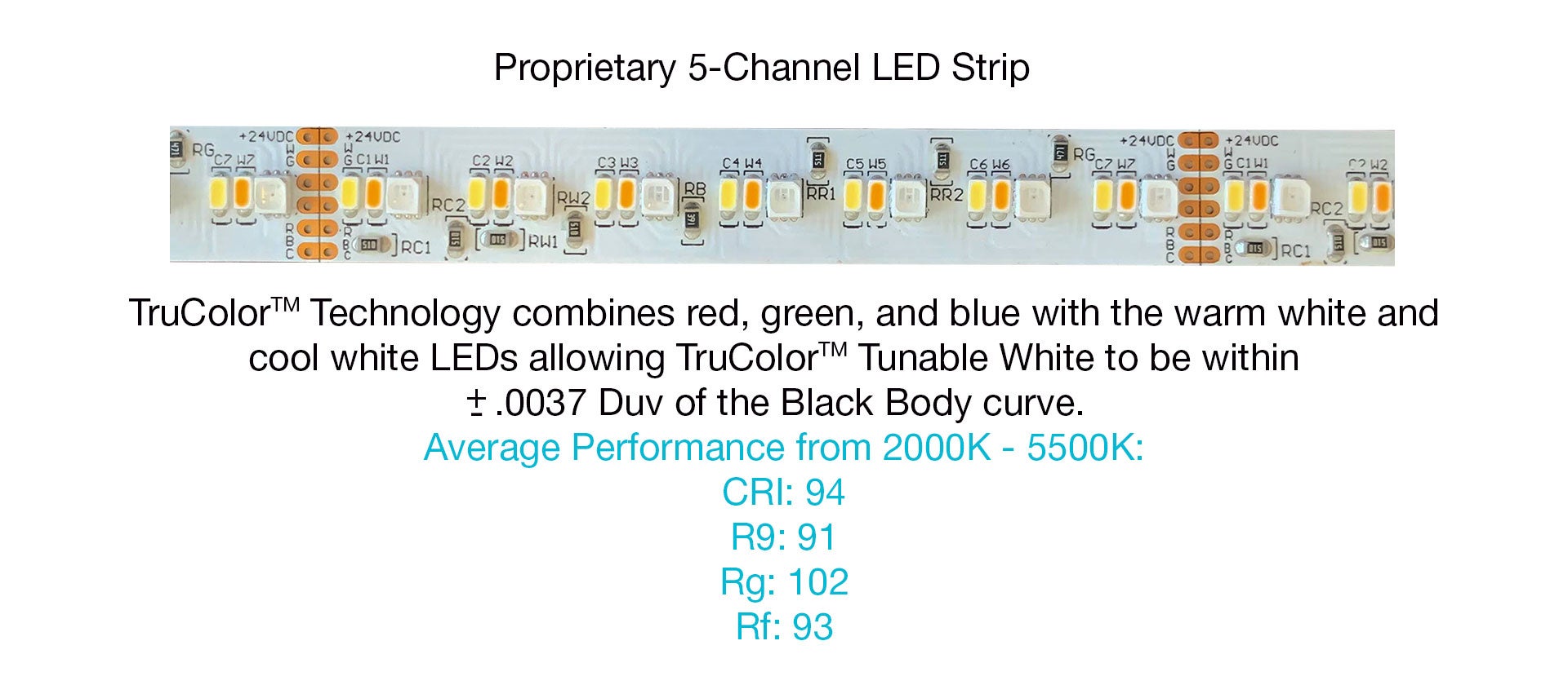 TruColor RGBTW can achieve one of the widest and most accurate tunable white spectrums available