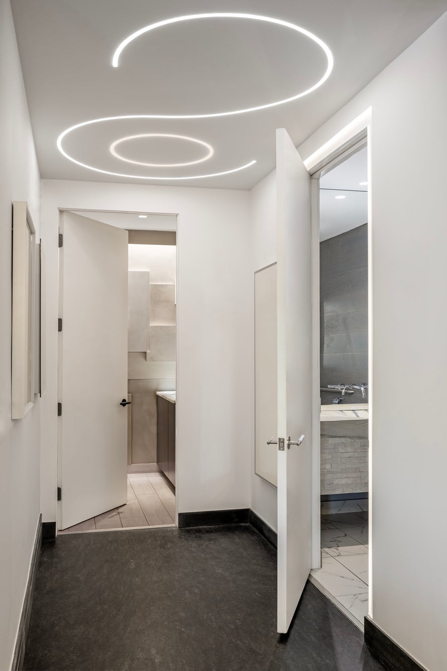 TruCurve 1 DIY (Do-It-Yourself) Plaster-in, 24VDC LED system recesses within 5/8" drywall, without any framing modification required. Redefining the relationship between Lighting and Interior Design, this innovative and highly efficient system blends seamlessly into the drywall, becoming part of the architecture. The TruCurve 1 DIY system makes creating complex configurations and organic shapes simple by specifying the degree and radius (9" minimum radius) of the curve you are designing. LED strips and Lenses are field-cuttable and ordered in 1' increments (up to 40' before refeeding). Multiple runs of channel mount flawlessly together, providing smooth and glare-free general illumination using designer-grade color rendering LEDs (95+ CRI). TruCurve 1 is available in multiple standard color temperatures: Static white from 2400K through 4000K, Warm Dim (