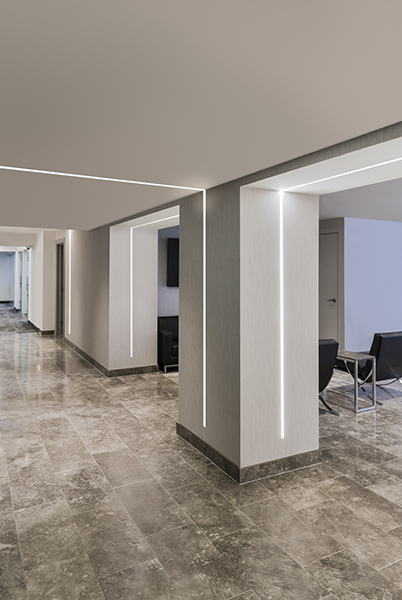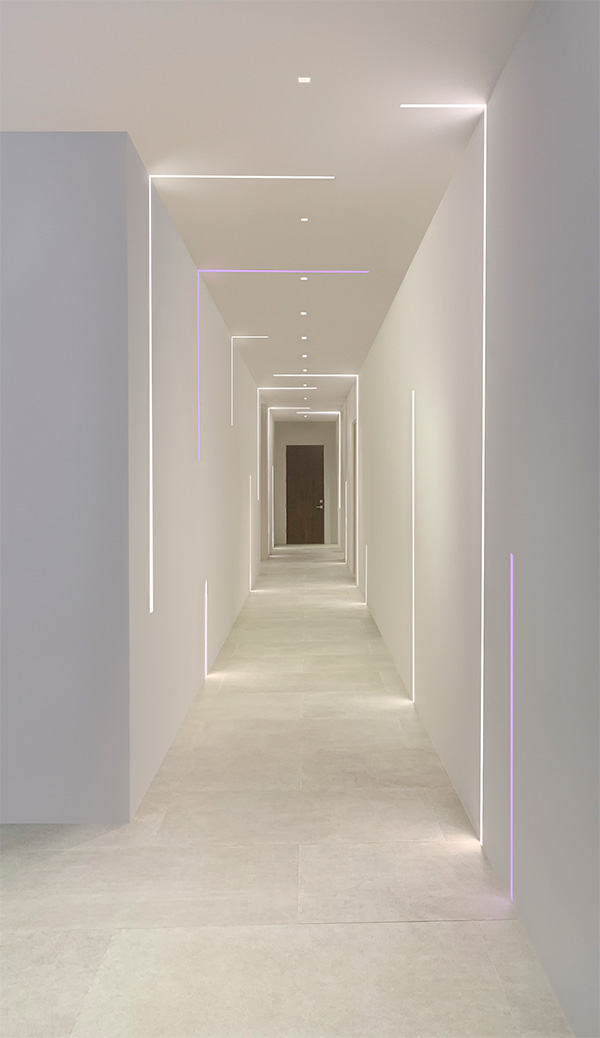 PureEdge pioneered the TruLine .5A Plaster-in 24VDC LED system that Recesses within 5/8" drywall, without any joist modification. Redefining the relationship between Lighting and Interior Design, this Innovative and highly Efficient system blends seamlessly into the drywall, becoming part of the Architecture. The slim extrusions, LED strips, and lenses are field-cuttable and ordered in 1' increments (up to 40' before re-feeding). Multiple runs of channel mount flawlessly together providing smooth and Glare-free general illumination using Designer-grade Color Rendering LEDs (95+ CRI). With the ability to run in vertical, horizontal, and diagonal directions, the compositions are truly endless. The TruLine .5A Plaster-in LED System is offered in multiple wattage and color temperatures ranging from 2400K through 4000K. Click here for all Other Color Temperatures. Coordinate installation with electrical and drywall contractors. Includes a 5-year pro-rated warranty. For custom designs and quotes, send drawings to design@PureEdgeLighting.com.