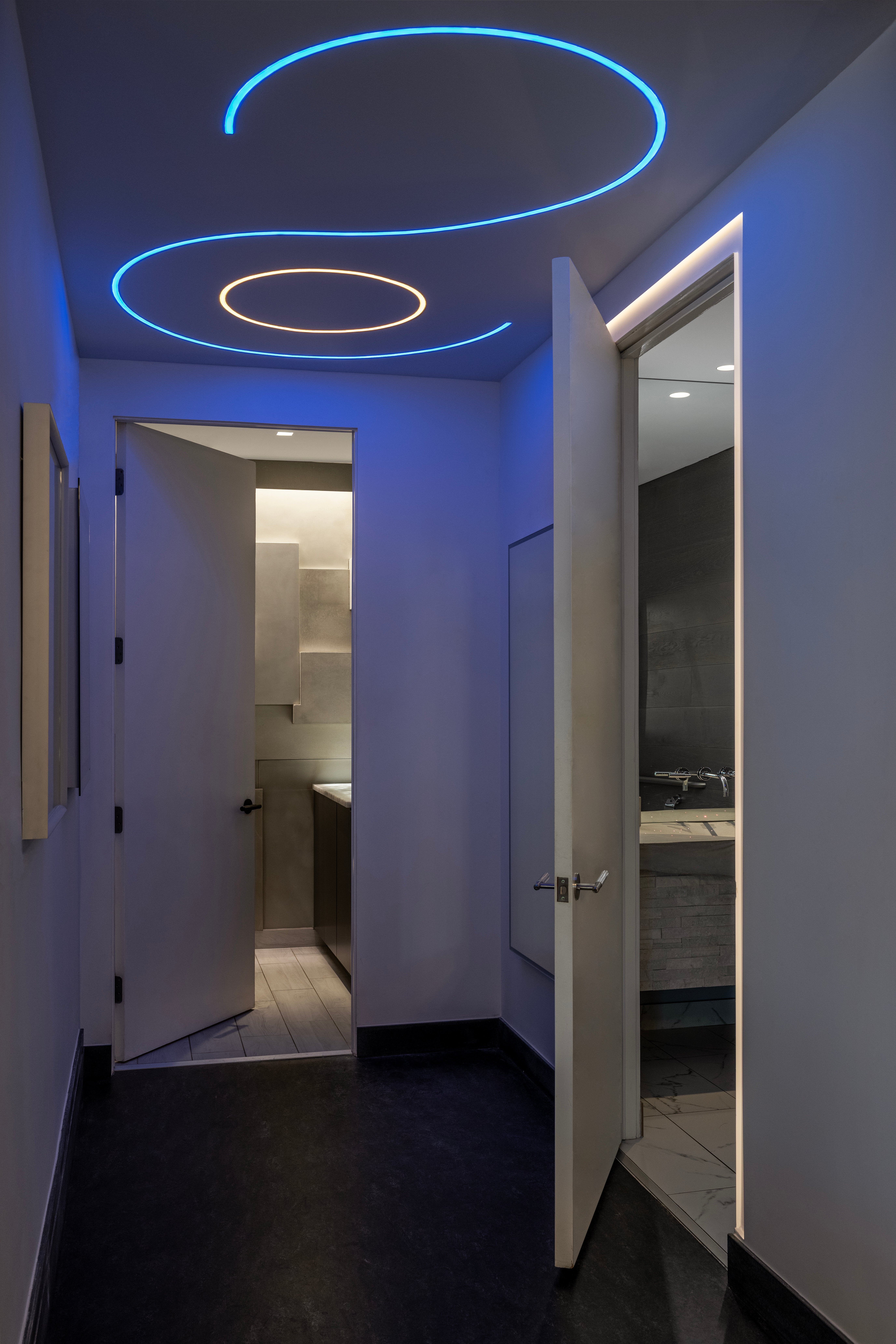 TruCurve 1 DIY (Do-It-Yourself) Plaster-in, 24VDC LED system recesses within 5/8" drywall, without any framing modification required. Redefining the relationship between Lighting and Interior Design, this innovative and highly efficient system blends seamlessly into the drywall, becoming part of the architecture. The TruCurve 1 DIY system makes creating complex configurations and organic shapes simple by specifying the degree and radius (9" minimum radius) of the curve you are designing. LED strips and Lenses are field-cuttable and ordered in 1' increments (up to 40' before refeeding). Multiple runs of channel mount flawlessly together, providing smooth and glare-free general illumination using designer-grade color rendering LEDs (95+ CRI). TruCurve 1 is available in multiple standard color temperatures: Static white from 2400K through 4000K, Warm Dim (